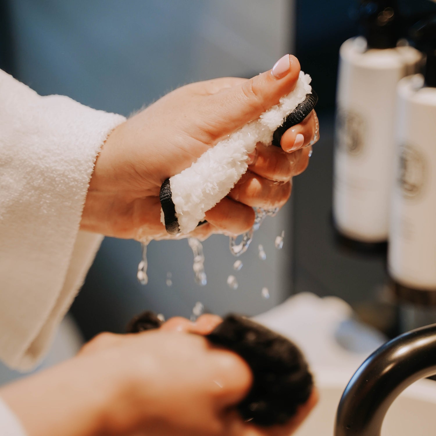 2. Wring out excess water so the cleansing cloud is damp and not dripping